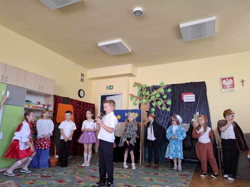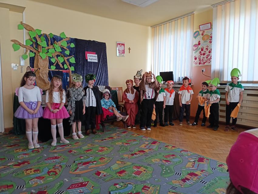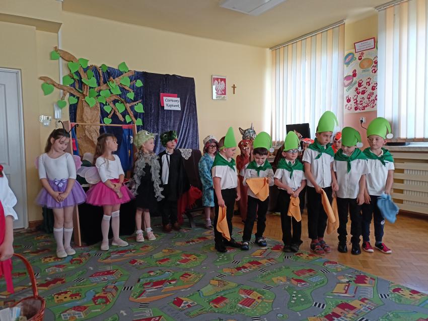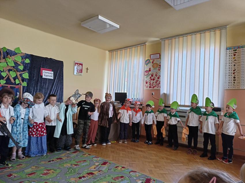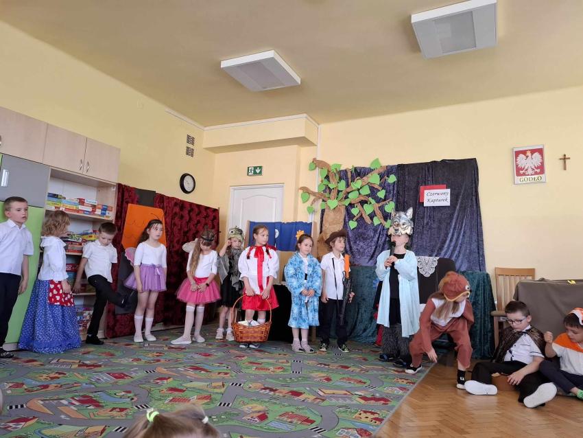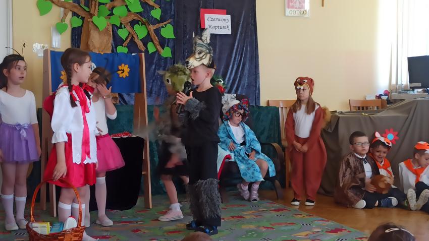 PRZEDSZKOLAKI Z GR. VI ZAPREZENTOWAŁY PRZEDSTAWIENIE TEATRALNE PT. CZERWONY KAPTUREK